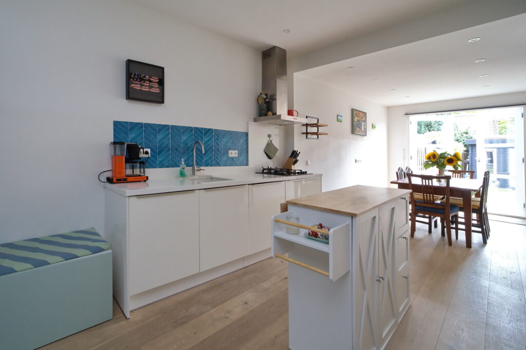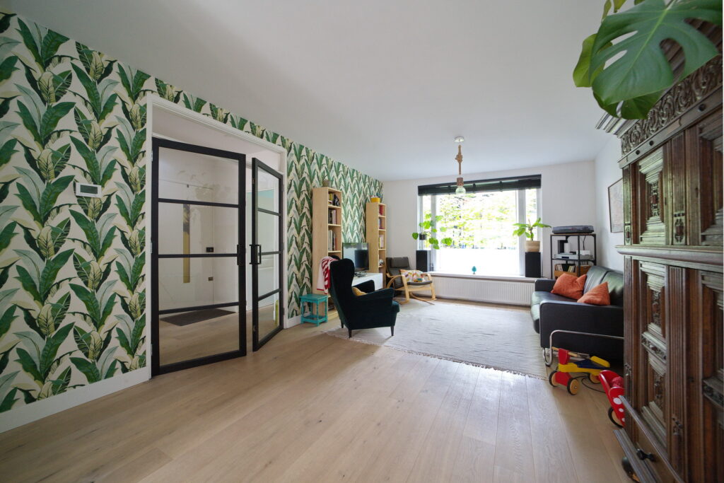 • Our age clause will be included in the purchase agreement. – € 435.000,- k.k. – MODERNIZED AND EXTENDED GROUND FLOOR APARTMENT WITH 2 BEDROOMS, FRONT AND BACK GARDEN AND GARDEN HOUSE. IN A QUIET NEIGHBORHOOD NEAR THE CENTER.