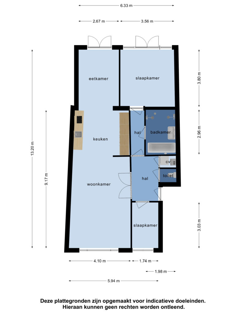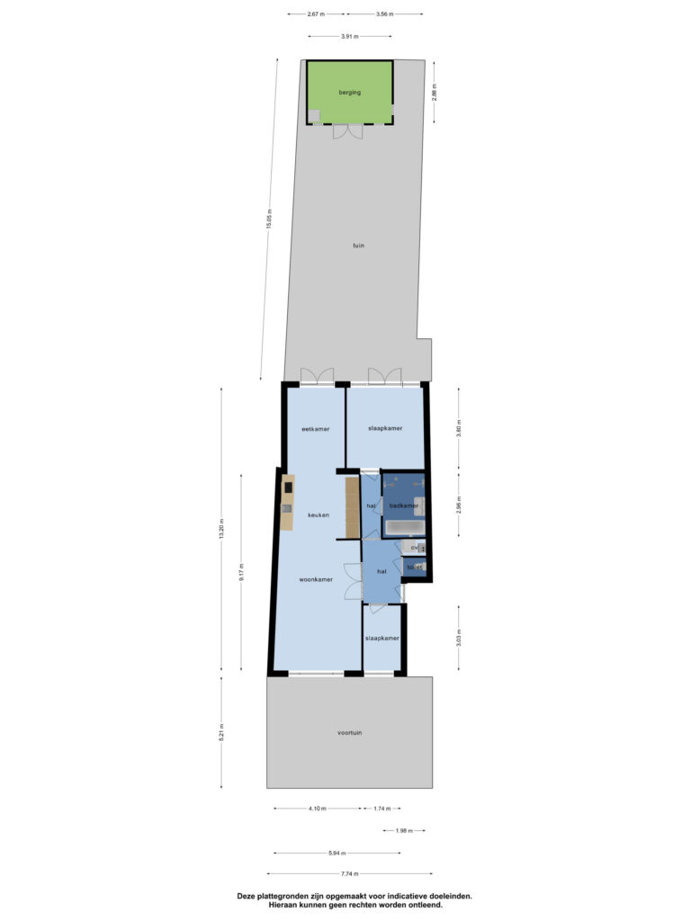 Dubbele deuren naar de woon- eetkamer met moderne openkeuken met inbouwapparatuur. Toegang tot de achtertuin op het Zuidoosten van ca. 94m2 met tuinhuis en achterom. Vanuit de hal via gang met kasten wand toegang tot de slaapkamer die eveneens toegang tot de achtertuin heeft. Moderne badkamer met bad, dubbele inloopdouche en 2 wastafels.