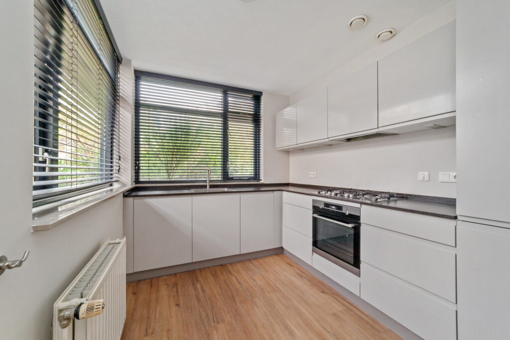 MODERN GROUND FLOOR APARTMENT WITH FRONT AND BACK GARDEN, 2 BEDROOMS, AND PRIVATE PARKING SPACE IN THE GARAGE UNDERNEATH. QUIETLY LOCATED IN THE “HAAGSCHE HOF” BEHIND PARKSTRAAT, NEAR LANGE VOORHOUT, NOORDEINDE, AND DENNEWEG.