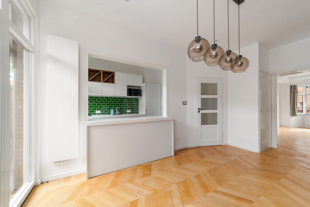 • Given the year of construction, our age clause will be included in the purchase contract. – € 700.000,- k.k. – A WELL-RENOVATED, COZY 7-ROOM APARTMENT WITH 4 BEDROOMS AND 2 BALCONIES. CLOSE TO THE MANY SHOPS AND TERRACES OF VAN HOYTEMASTRAAT.
