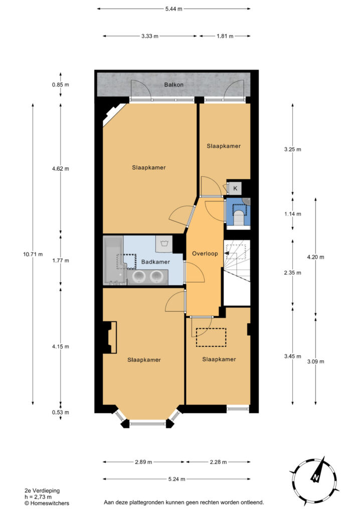 2e etage. Overloop, toilet. Voorkamer, voorzijkamer met toegang tot de vliering. Moderne badkamer met wastafelmeubel, bad met douchehoek en opstelplaats voor de wasapparatuur. Achterkamer en achterzijkamer